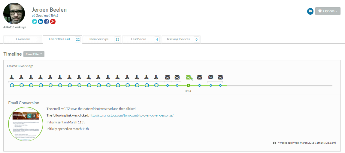Op basis van kenmerken uit het profiel kun je leads segmenteren en veel persoonlijker benaderen.