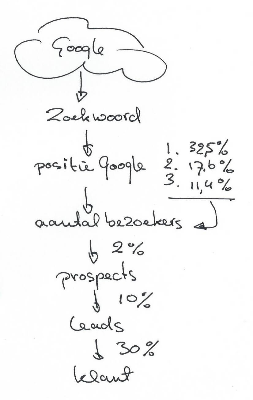 Wil je een bepaalde conversie bereiken, dan moet je eerst een bepaald aantal bezoekers binnenhalen. En deze is weer afhankelijk van het zoekvolume en je positie in Google.